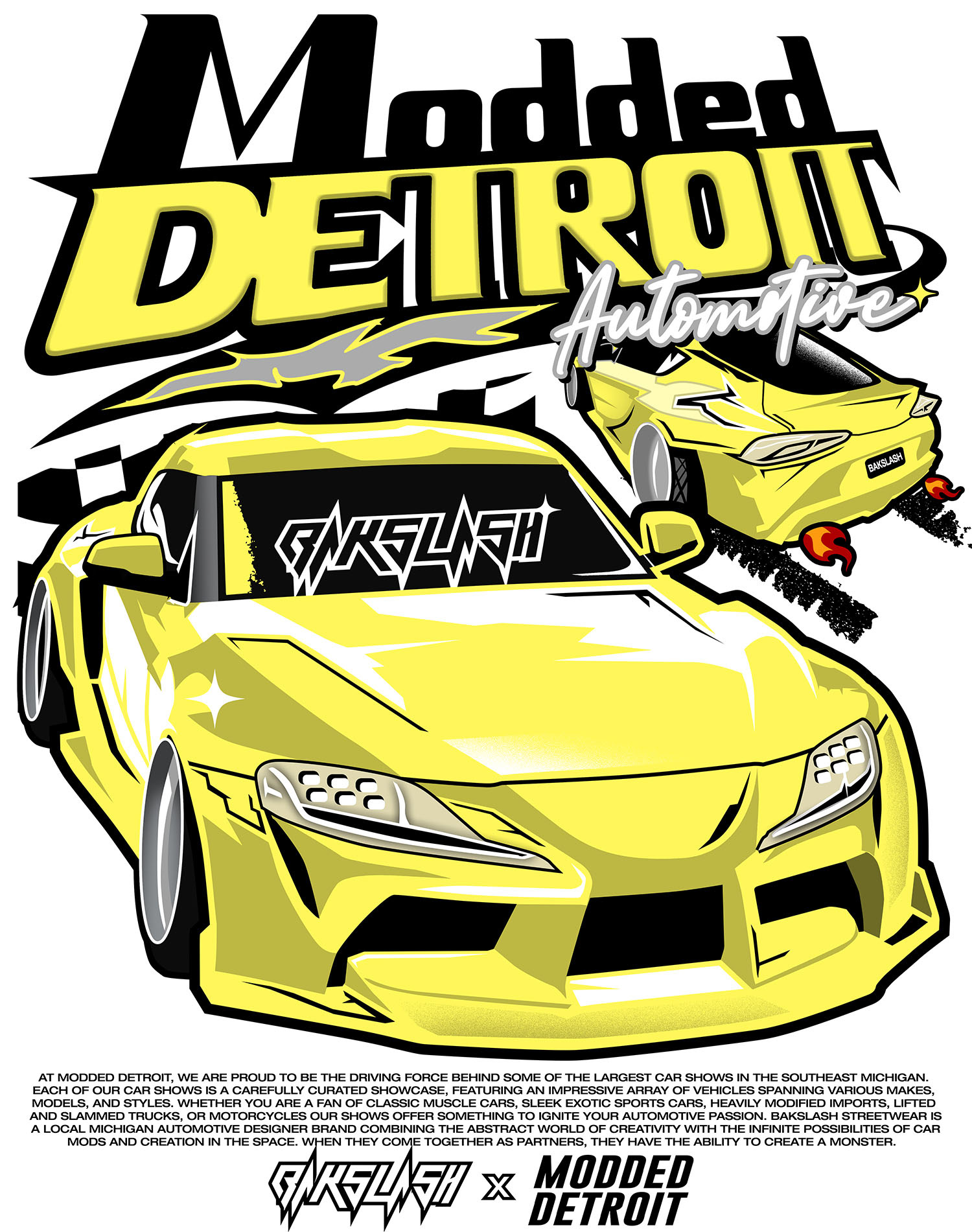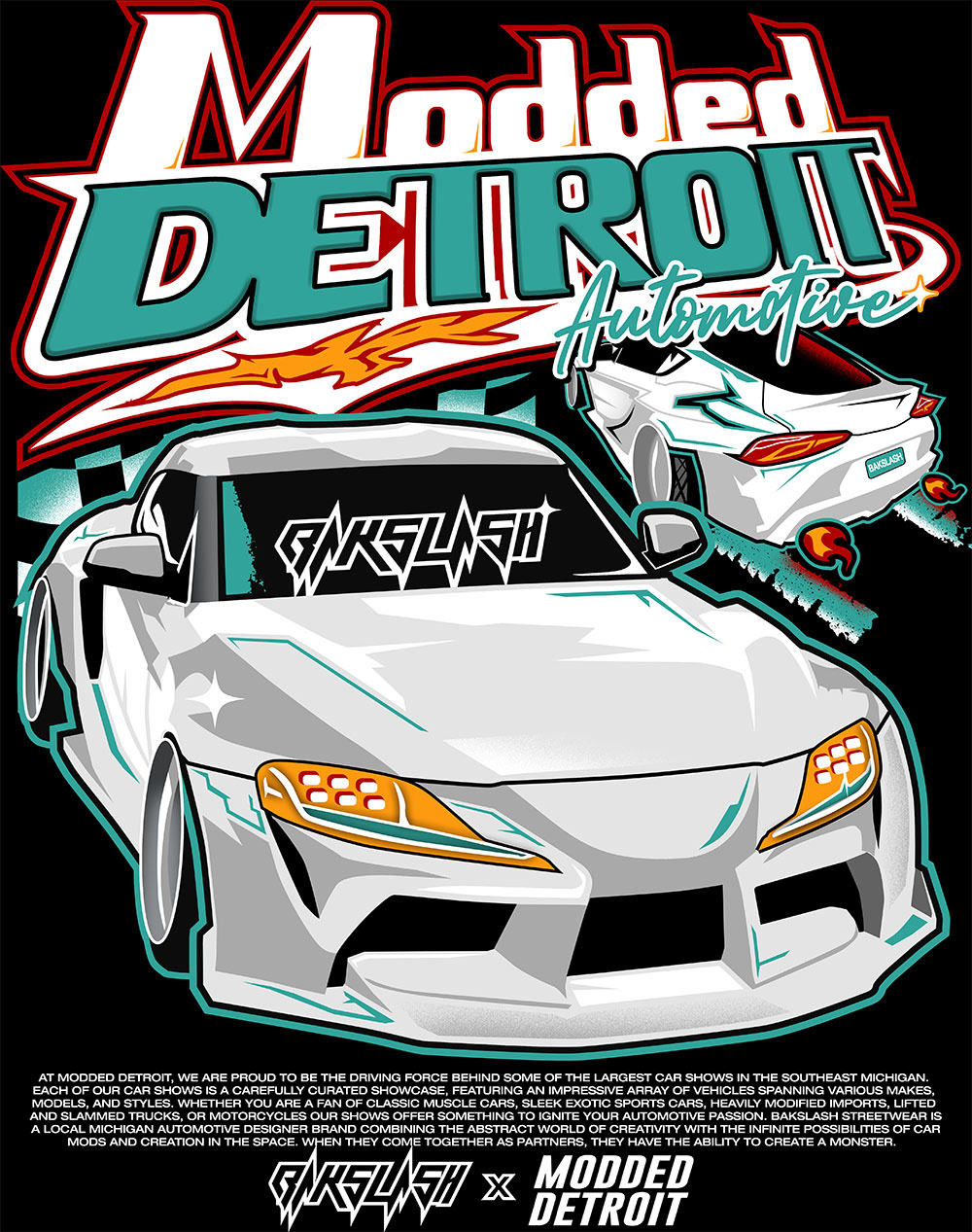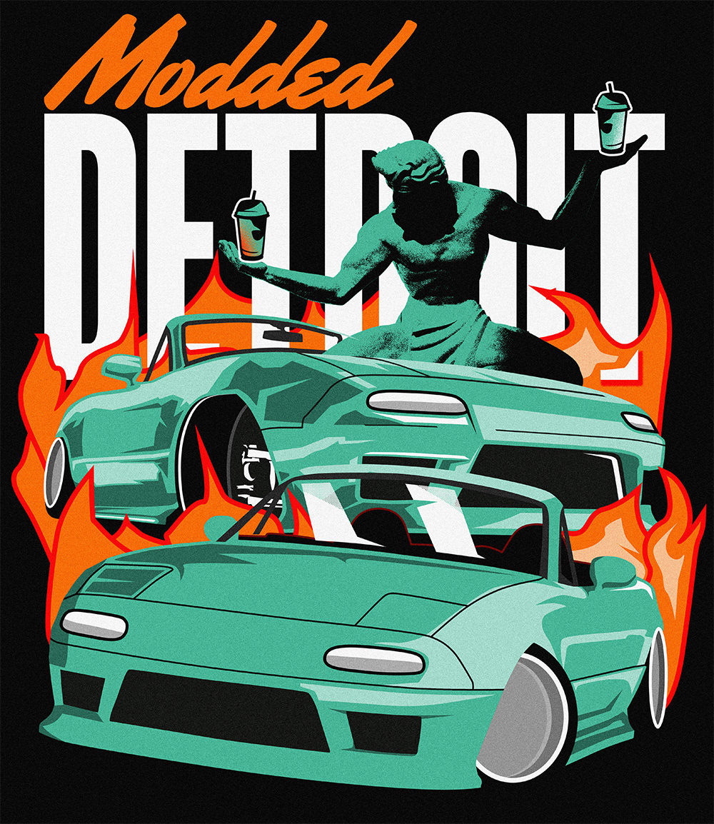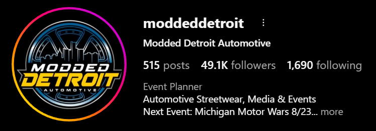 ModdedDetroit is a huge Michigan Based Automotive Show Brand that shows Local Car Shows in SouthEast Michigan. I have been close with them for over 3 years, but as of Summer 2023, started Designing Merchandise for them and their shows!