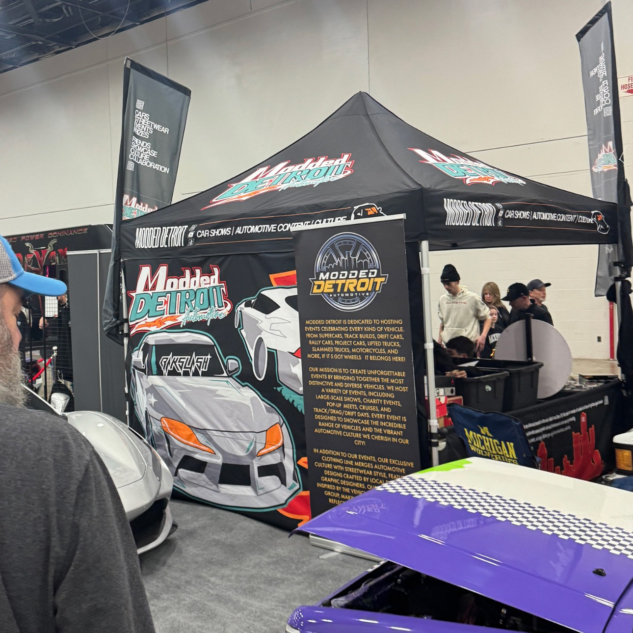 In January 2025, Modded Detroit Partnered with the Detroit Auto Show and was able to provide a huge selection of community chosen cars to the Basement of Huntington Place. Modded Detroit had reign to the entire basement of the 2025 Detroit Auto Show and I was in Charge of Designing the tents for their setups around the event!